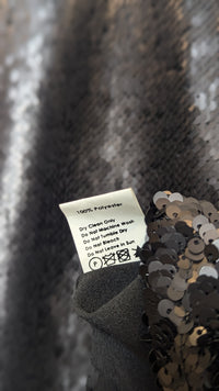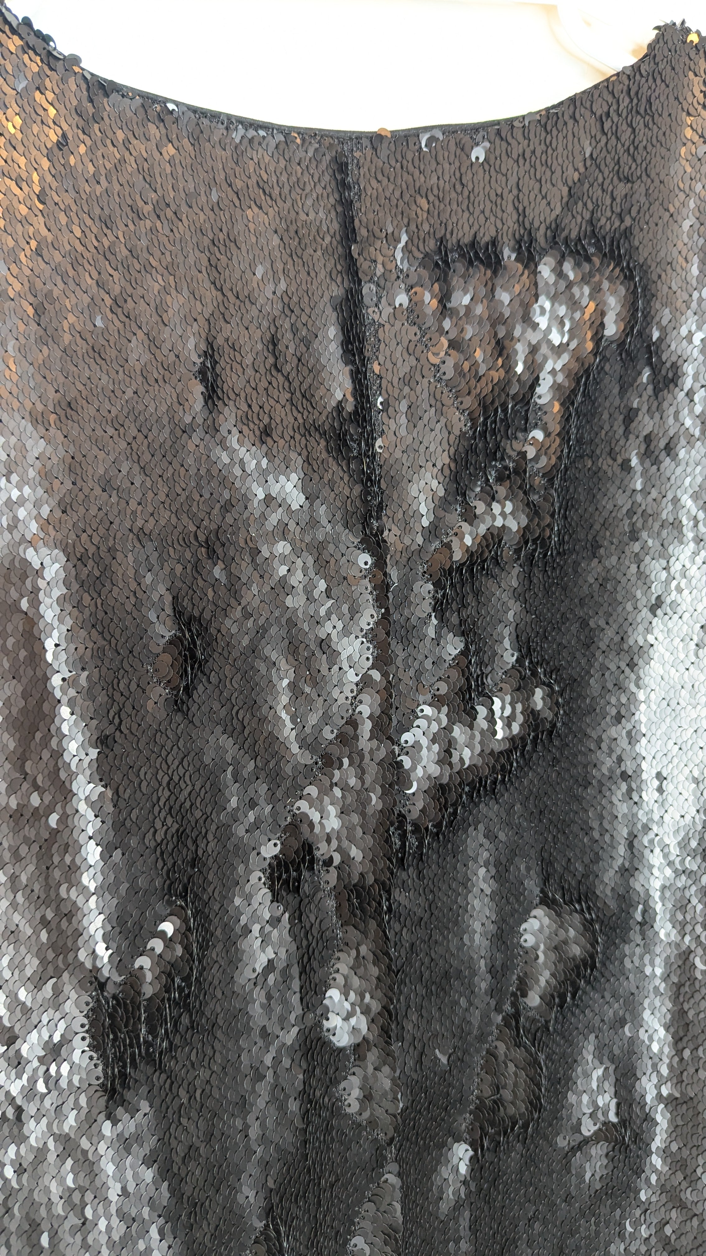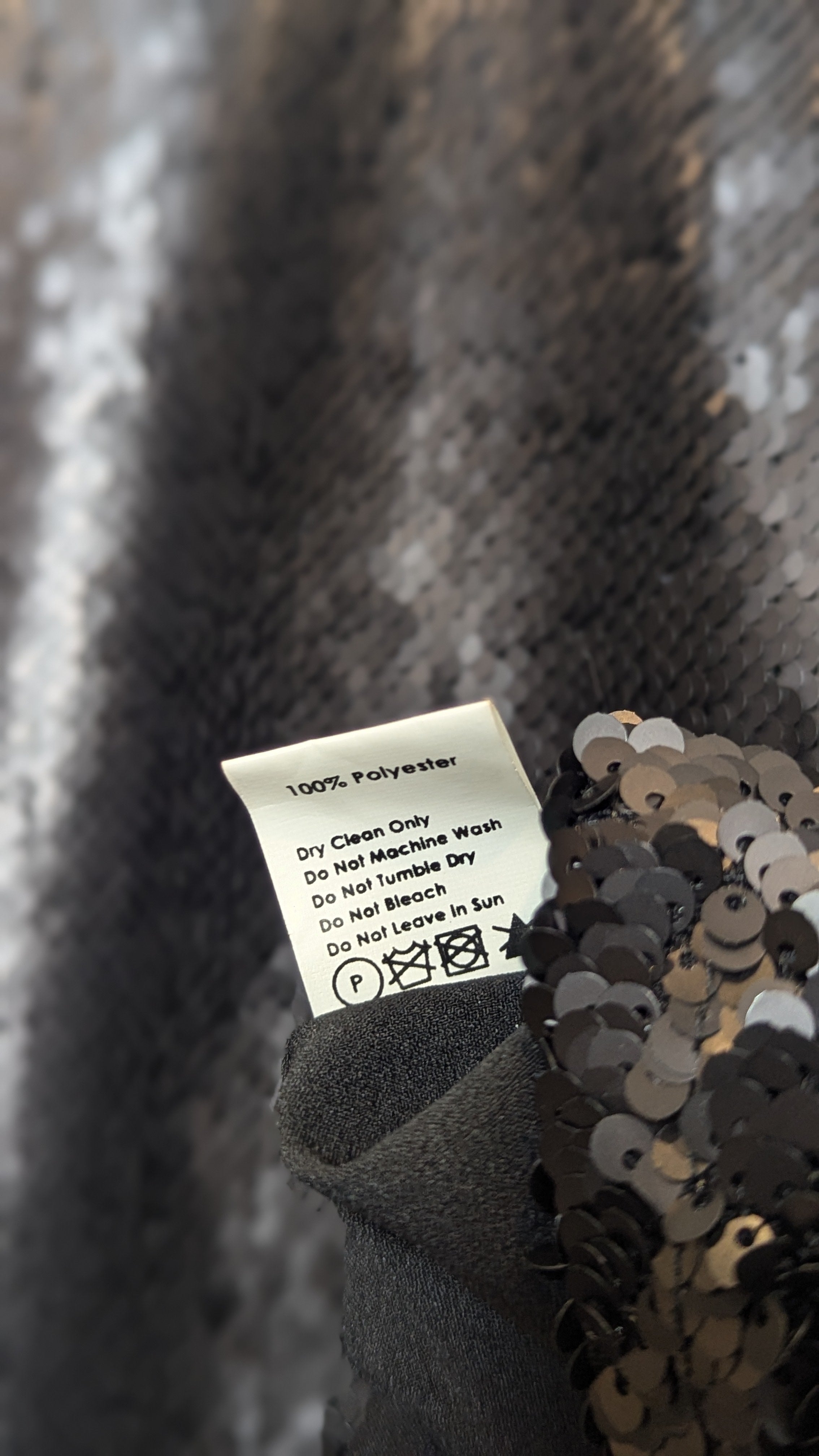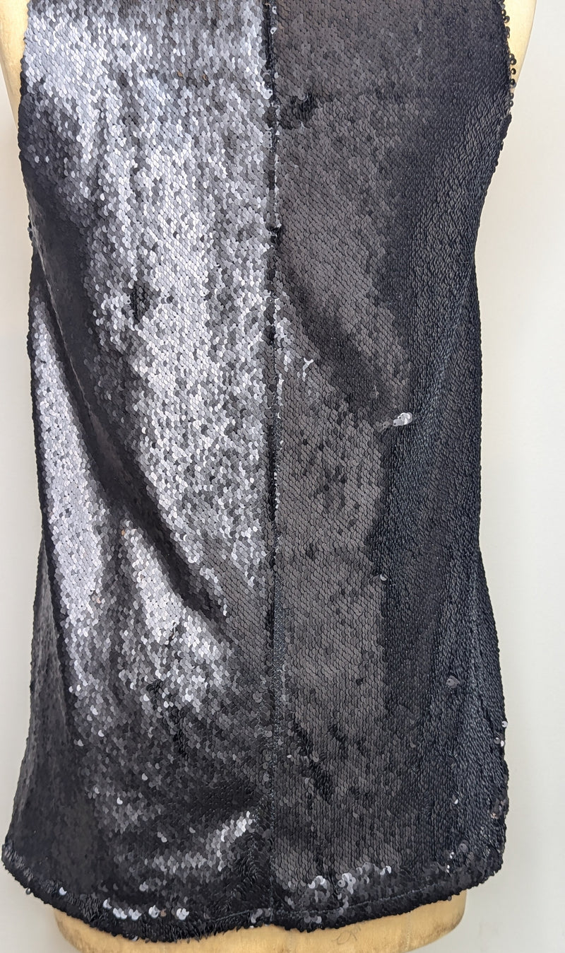 Beautifully made sequin fabric mid/heavy weight, none of that cheap stuff! There are a few areas near back seam that dont have sequins, looks like the way the fabric has been stitched. Not obvious.