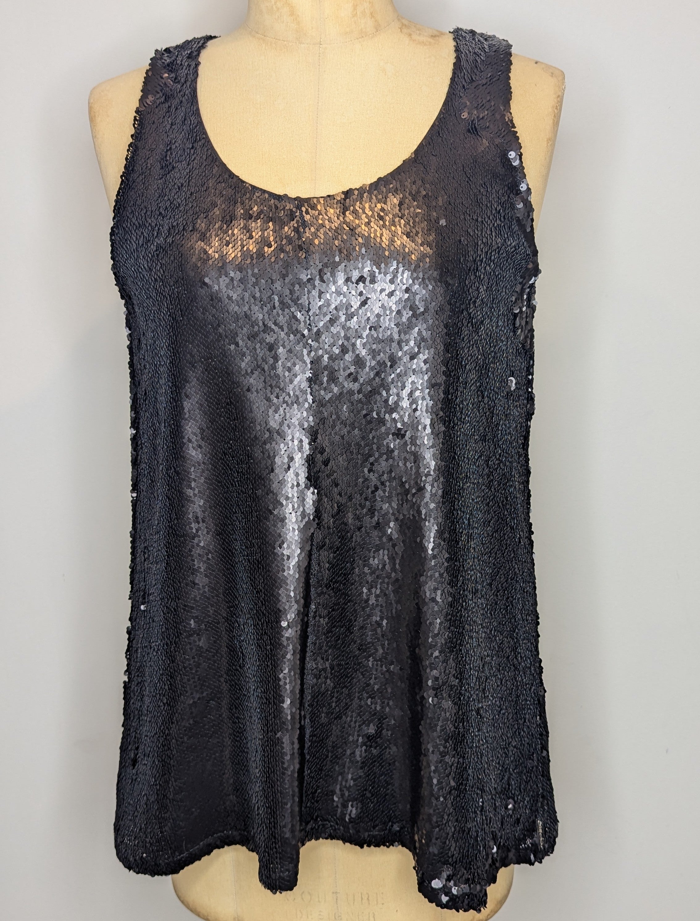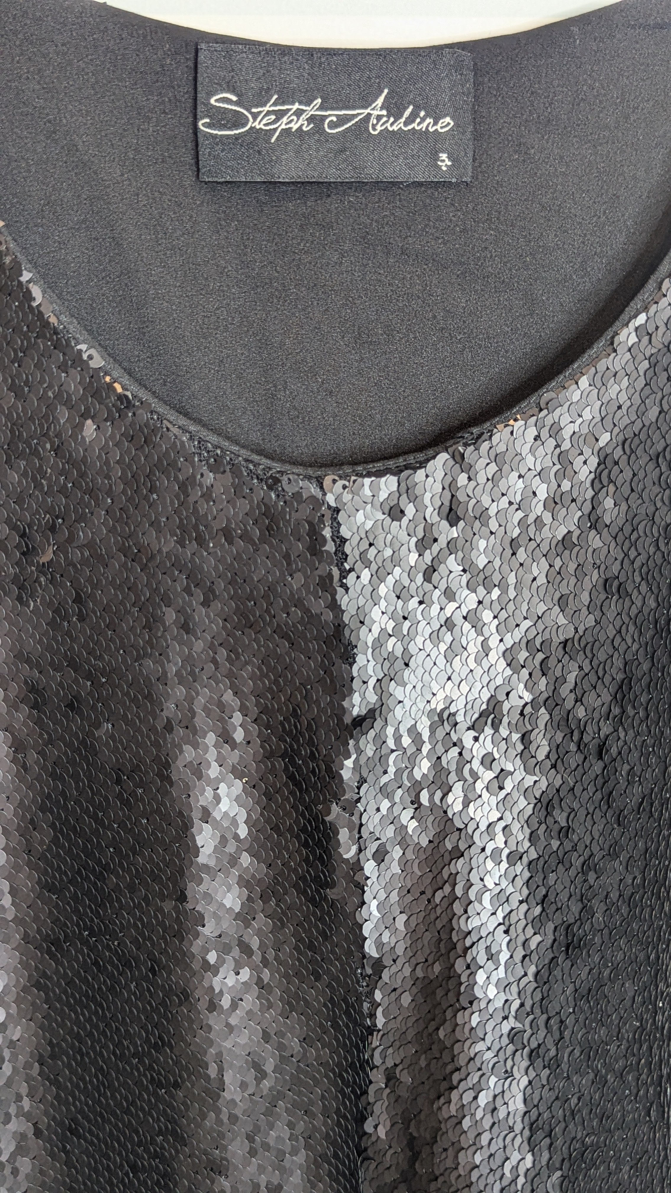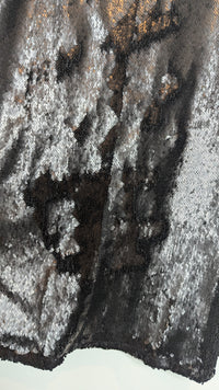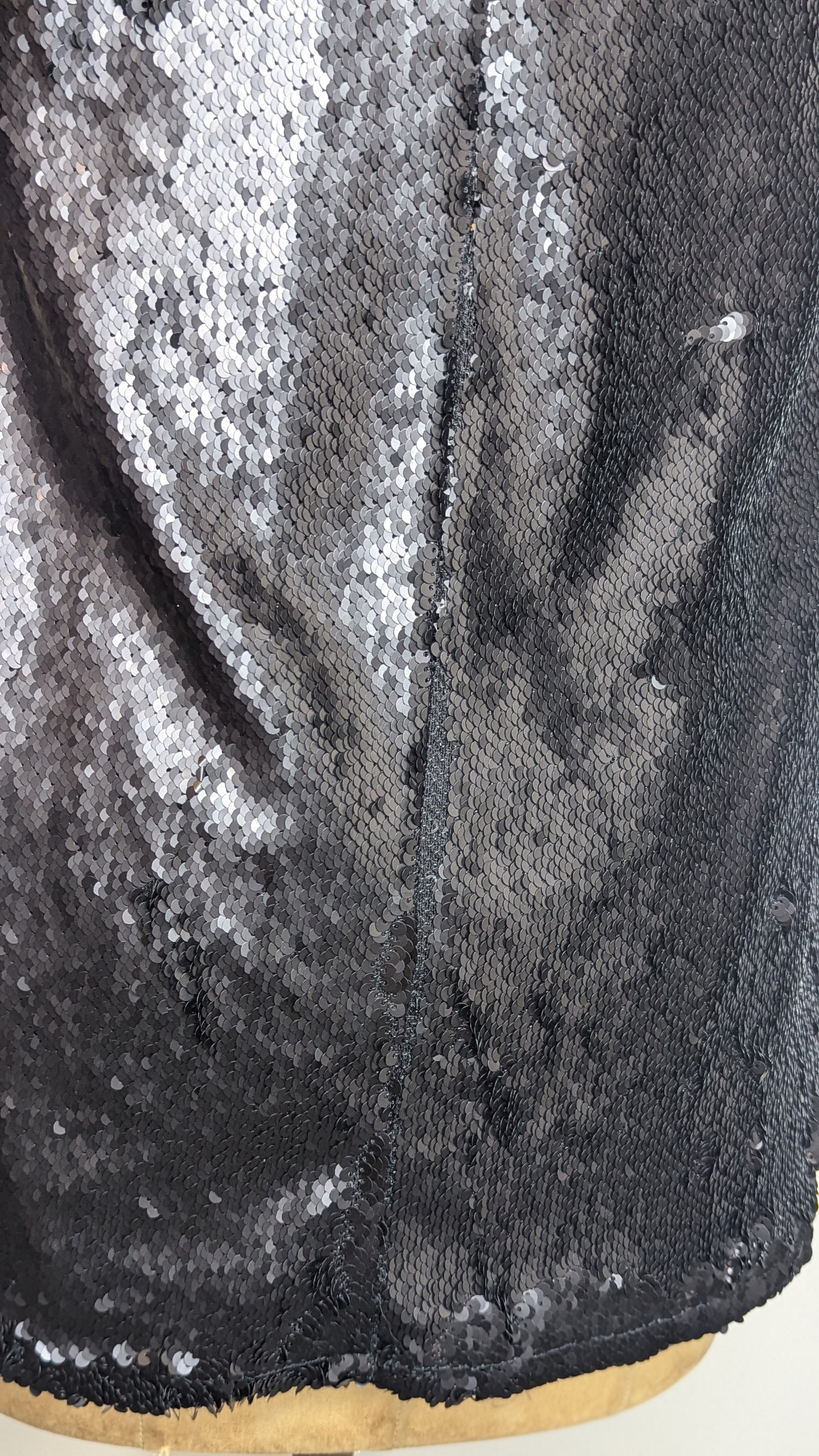 Beautifully made sequin fabric mid/heavy weight, none of that cheap stuff! There are a few areas near back seam that dont have sequins, looks like the way the fabric has been stitched. Not obvious.