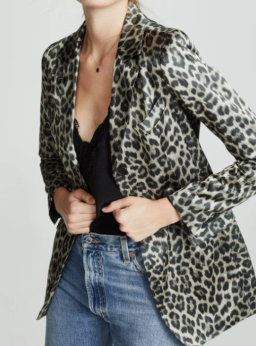 Smythe Sateen Leopard Print Boyfriend Blazer