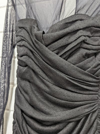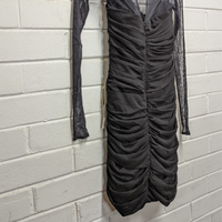 Stunning formal or party dress that fits and ruches in all the right places. Beautifully draping across the body with a lovely loose high neck.