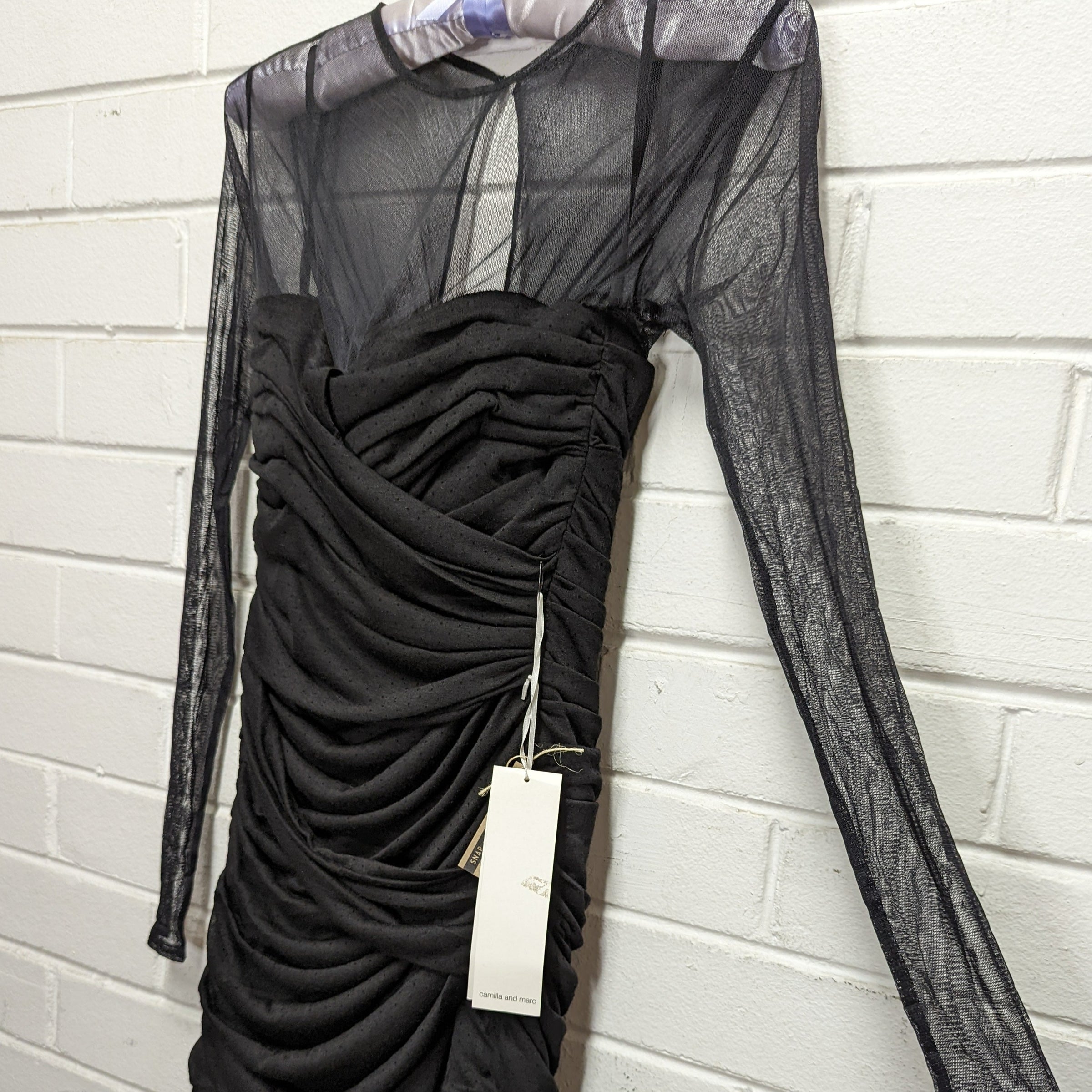 Black Spot Ruched Mini Dress by C&M / CAMILLA & MARC
