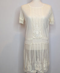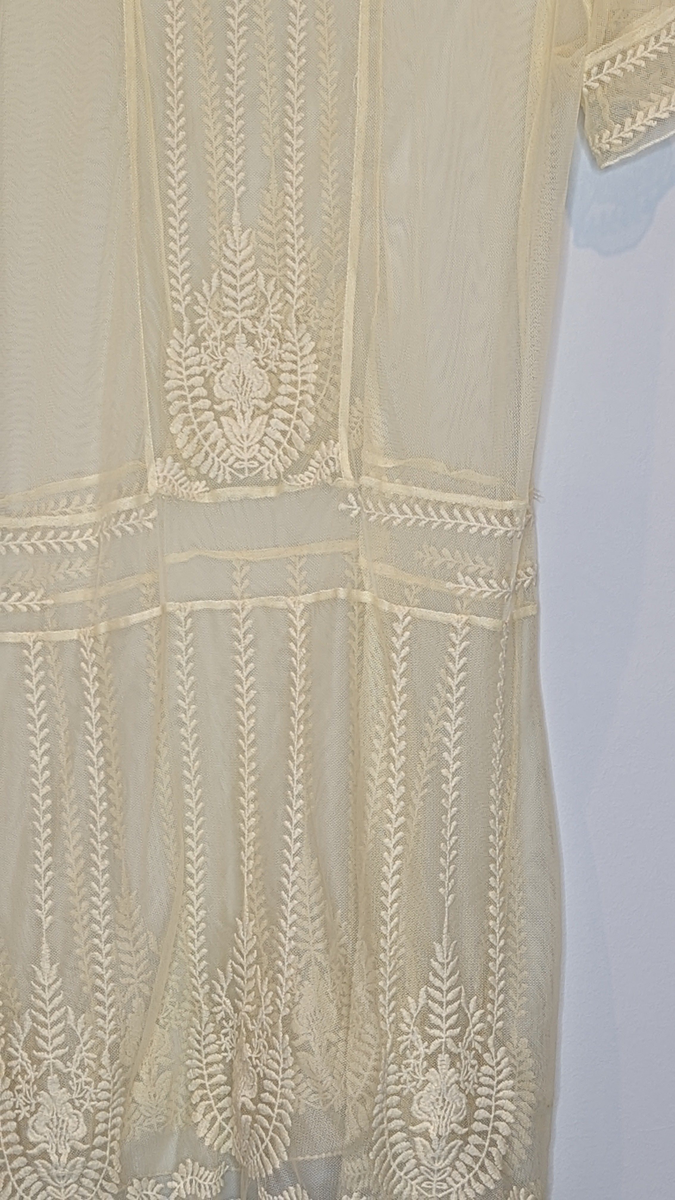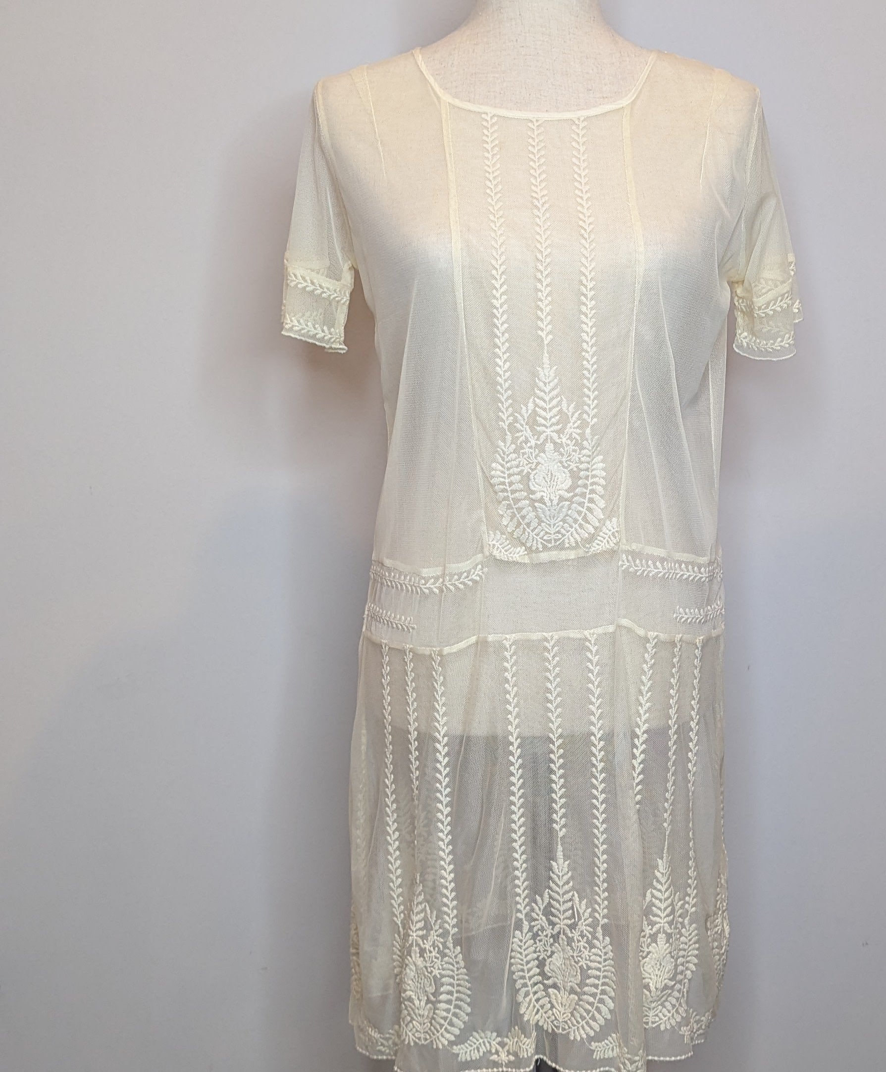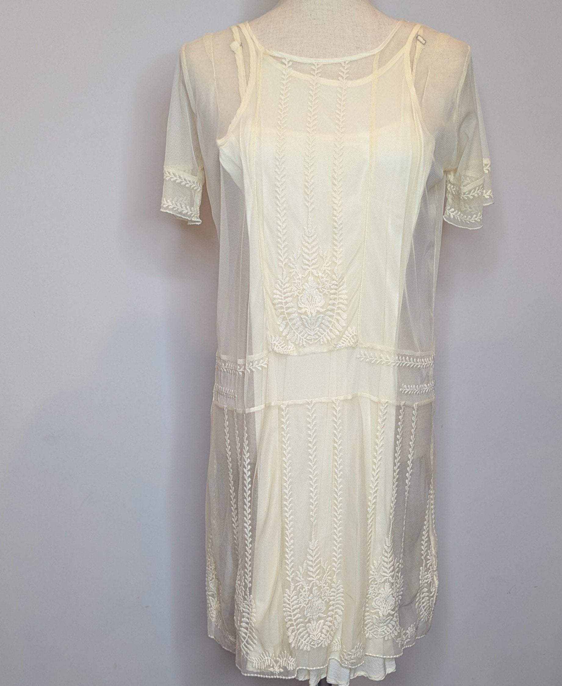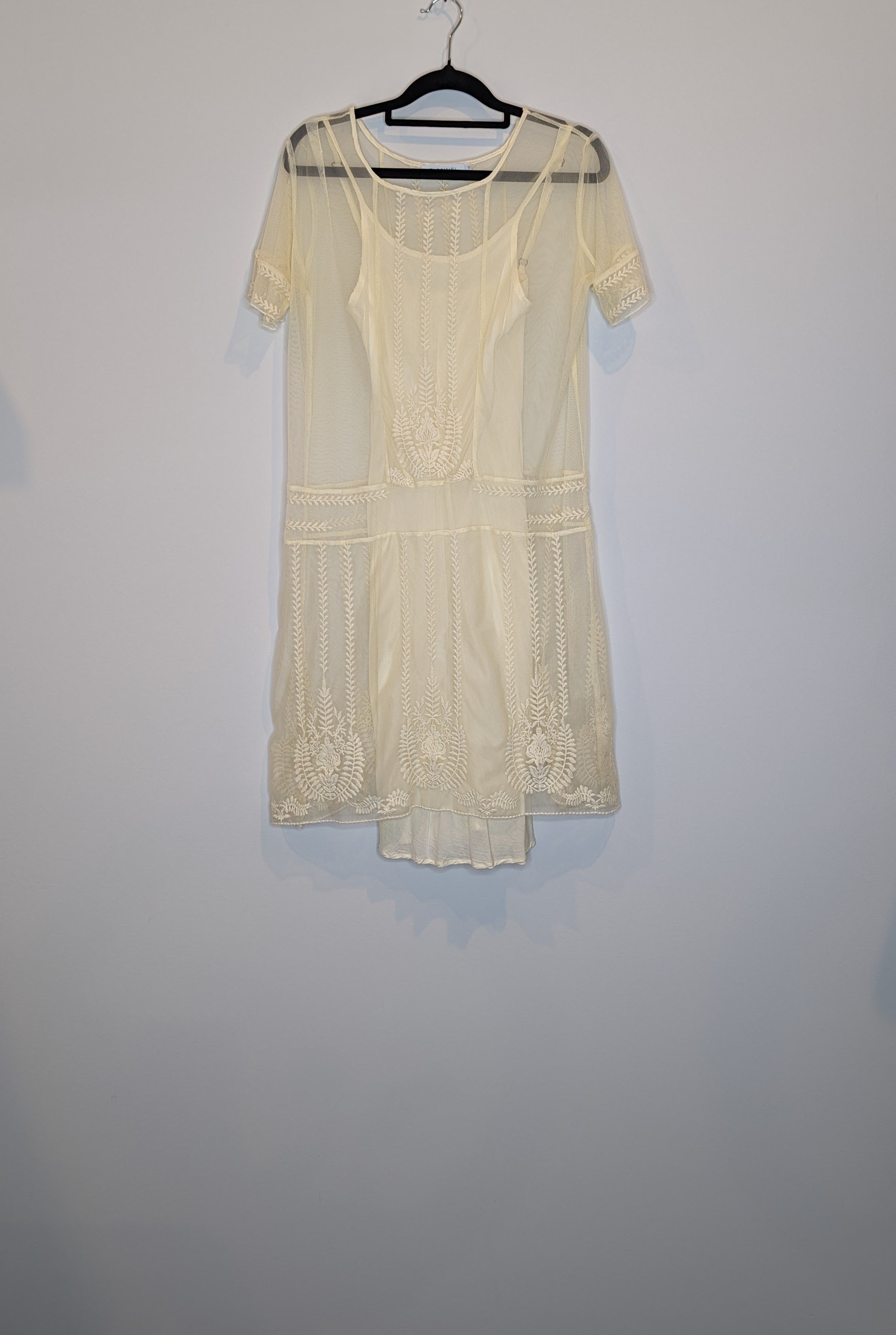 Striking cream lace embroidered in a timeless '50s style, this overlay is sure to impress! did someone say unconventional wedding dress? Sold with a cream slip.