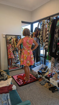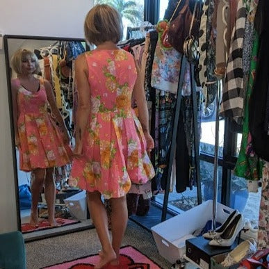 Vintage Sleeveless Belted Pink Floral Print Dress, by Kenzo Jungle