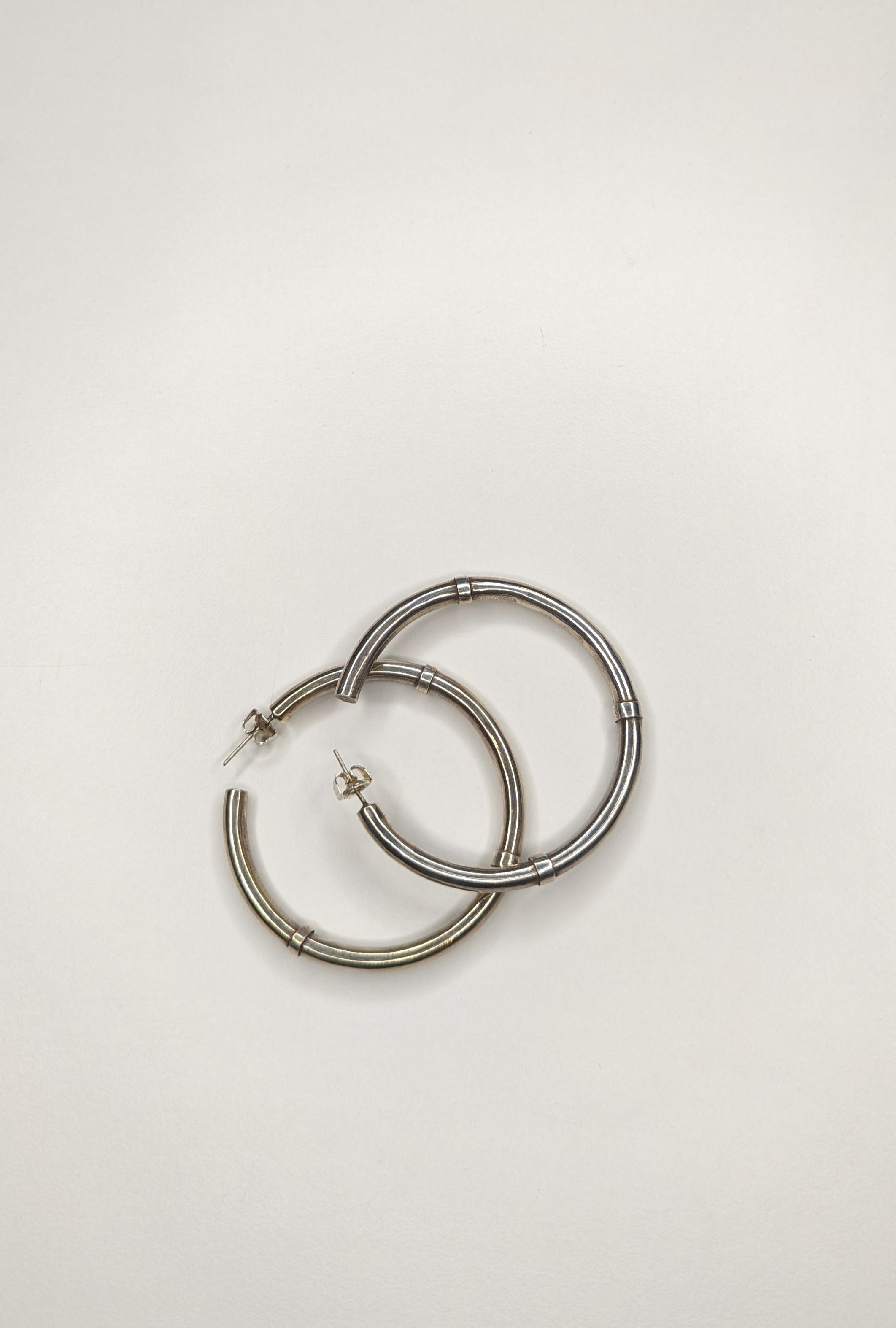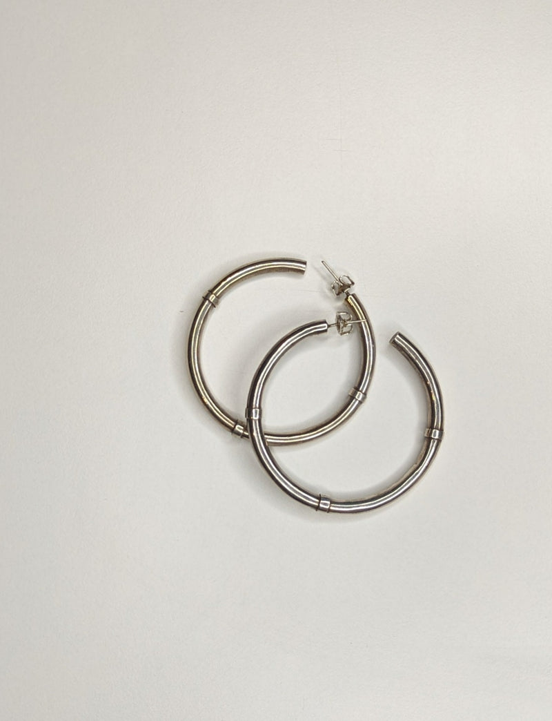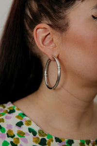 Discover the perfect finishing touch for your look: these beautiful sterling silver large hoop earrings! Expertly crafted with three sections, they add a subtle touch of sophistication to any outfit. Feel confident & stylish wearing these timeless earrings!