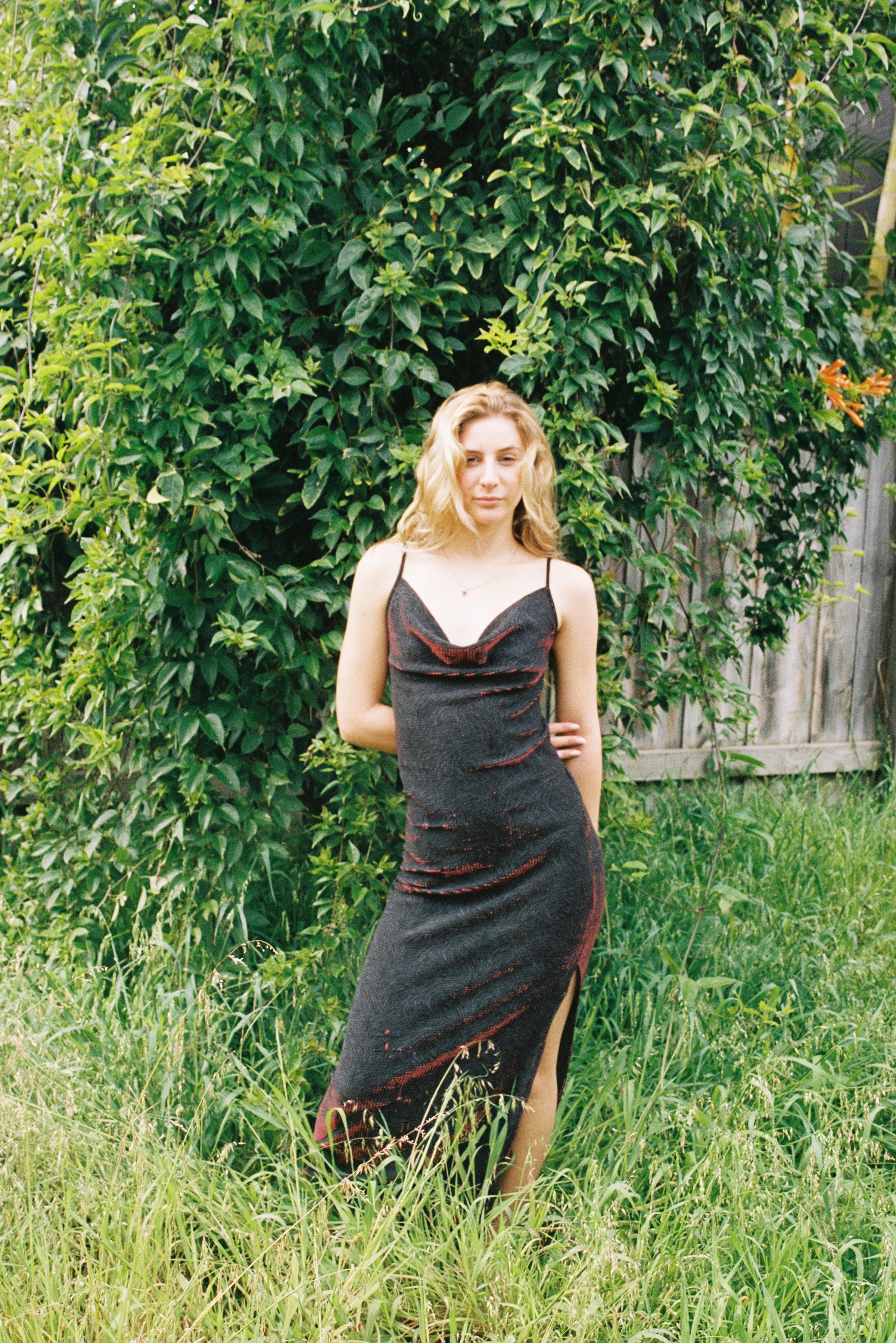 A classic long dress, until it catches in the sunlight- then BOOM RED METALLIC!! Gorgeous, eyecatching (& sometimes understated!) Y2k, party and cocktail vibes. Make is casual with a denim jacket & sneaks or Docs. Endless possibilities!