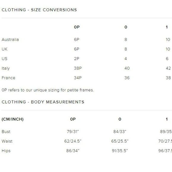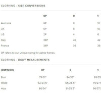 - 0P refers to our unique sizing for petite frames, specially designed with petite proportions that are suited to clients who are under 5'3""/ 160cm